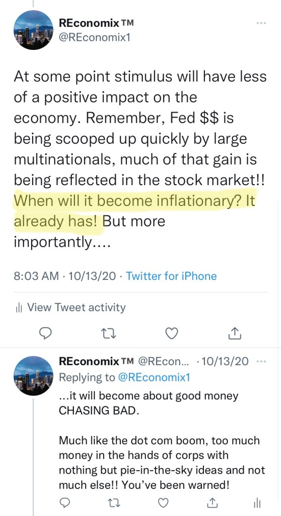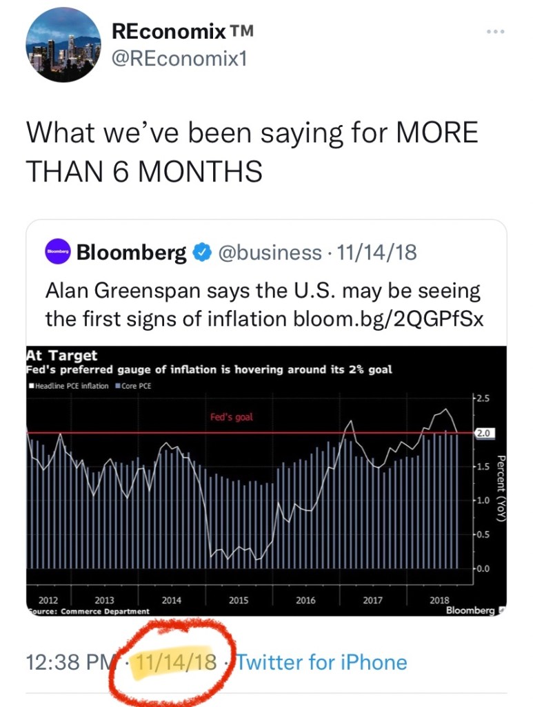 A few of us have been warning people for years about inflation . Not just the occasional tweet of concern, but actually screaming about it via text, and even getting into twitter arguments with people who were absolutely certain that I was wrong.
